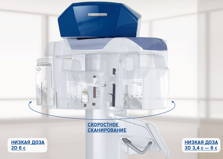Преобразовываясь напрямую в электрические сигналы, минуя стадию преобразования в свет, рентгеновские фотоны остаются в неизменном виде до тех пор, пока не сформируют панорамное изображение. Таким образом благодаря минимальному рассеиванию сигнала технология позволяет генерировать значительно более четкие изображения, чем те, которые получены с использованием традиционной технологии. Это гарантирует высококонтрастные экстраоральные 2D-снимки при низких дозах облучения: панорамные изображения и телерентгенограммы, визуализацию верхнечелюстных пазух, ВНЧС, зубных рядов и прикуса.