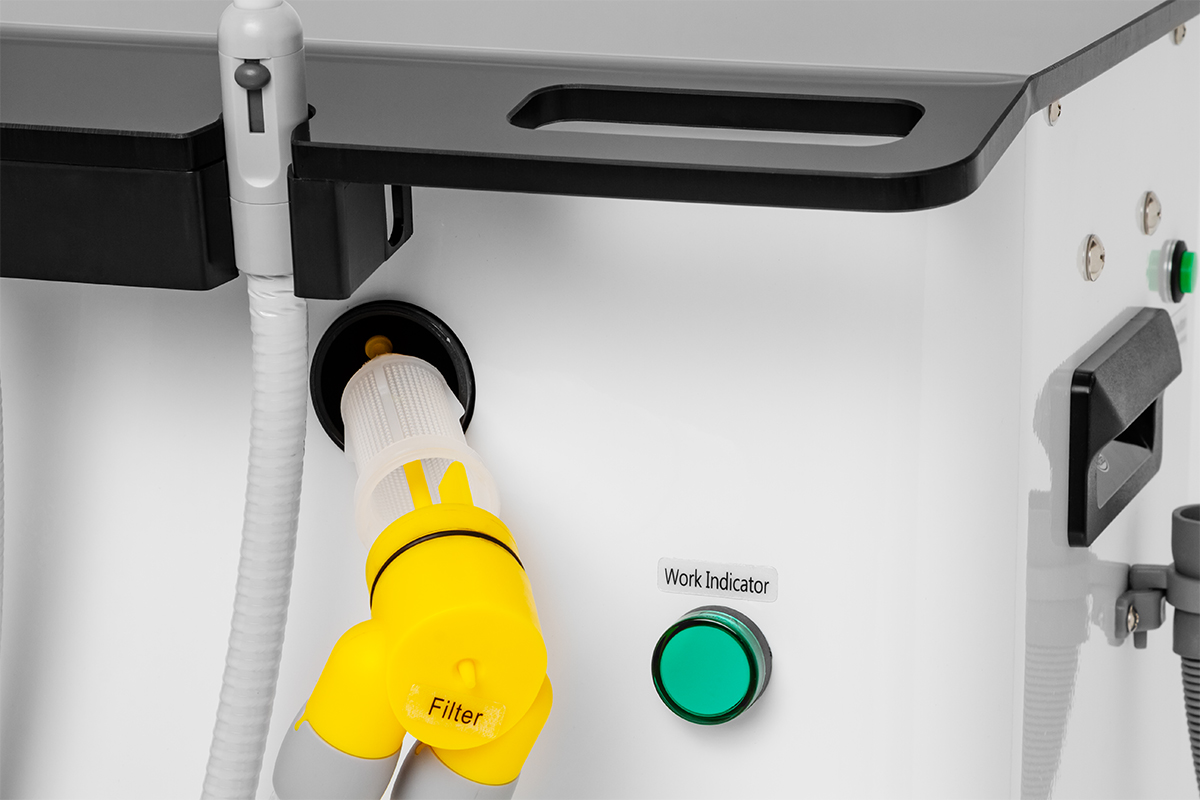 Мощный отсос предотвращает скопление воды в полости рта, исключает рвотный рефлекс и дискомфорт пациента от излишков воды. Позволяет врачу работать быстрее и эффективнее, не прерывая процедуру.
