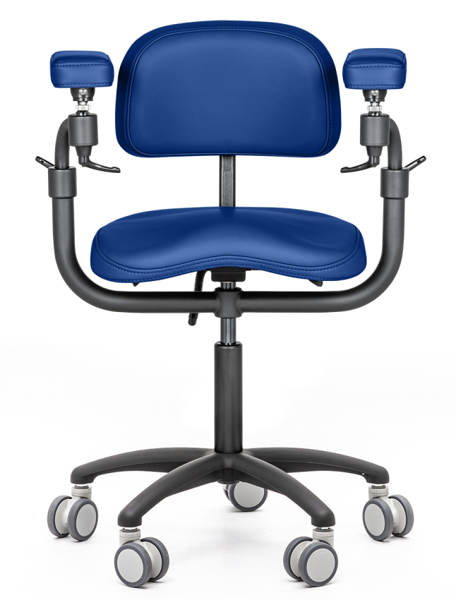 Комфорт — основная характеристика данного стула. Сиденье полуседло совмещает в себе посадку классического и седловидного стула, что снимает нагрузку с позвоночника.